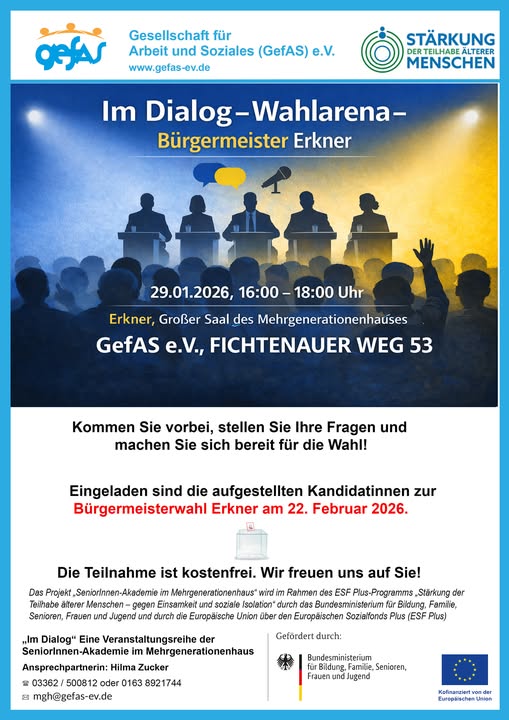 „Im Dialog“ – Wahlarena – Bürgermeister Erkner 📅 Datum: 29. Januar 2026⏰ Zeit: 16:00 – 18:00 Uhr📍 Ort: GefAS e.V., […]