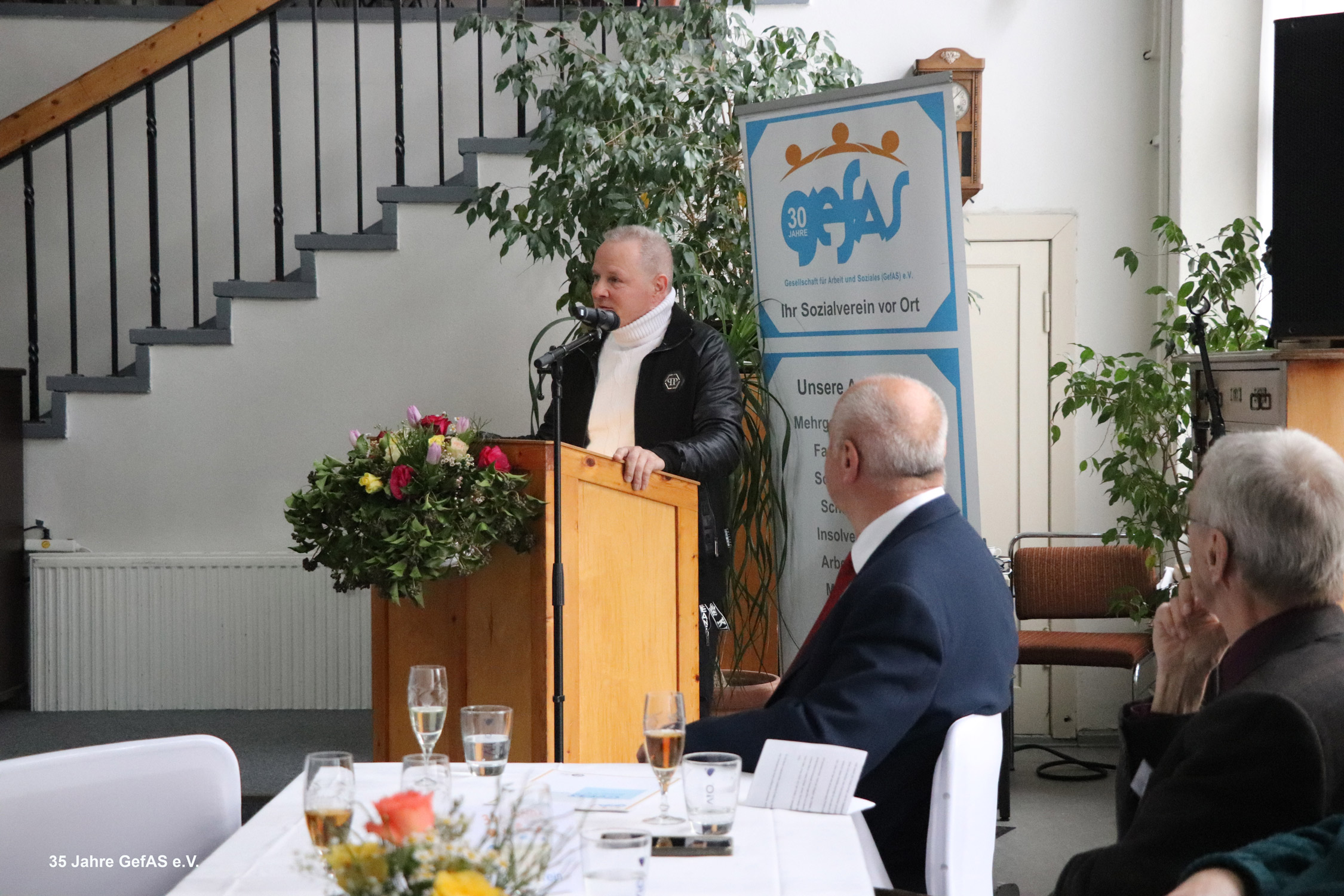 Nach der Festrede schlossen sich mehrere Grußworte an, in denen die Arbeit der (GefAS) e. V. – insbesondere die Tafelarbeit – außerordentlich gewürdigt wurde. Alle Rednerinnen und Redner sprachen sich deutlich für den Erhalt der (GefAS) e. V. am Standort Erkner aus.